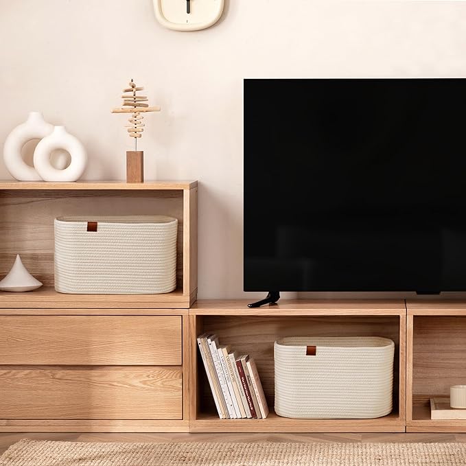 - Convenient Handles: Each basket for organizing has 2 sturdy & soft handles. It is convenient for moving and even if you carry items of high weight, do not hurt your hands. Built-in handle design makes your cube rope basket more beautiful.