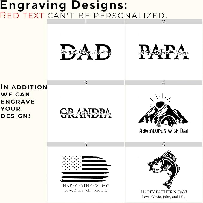 - Customized: Engraved box is a unique gift for Daddy from kids. Choose from three designs and add kids' names to make the engraving extra special. Additionally, it can be engraved inside with different fonts we offer on the other side of the lid to create a surprise message for your dad.