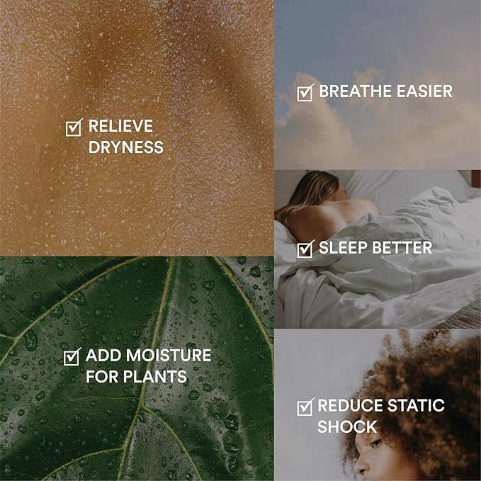 - Breathe in the Benefits: Relieve dryness, breathe better, sleep better, keep hair, skin, and houseplants happy.