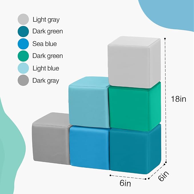 - Foam Blocks for Early Learning: Our 6-piece toddler blocks of foam cubes covered in durable, waterproof PU leather features vibrant colors designed to grab kids’ attention and foster early color recognition, creating a vibrant toddler zone to explore and learn through stacking, building, and imaginative adventures