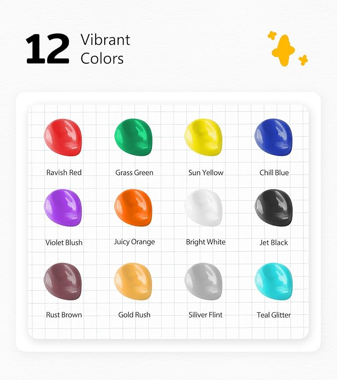 - VIBRANT & LONG-LASTING PAINT COLORS: This washable tempera paint delivers rich, bold colors with excellent coverage, perfect for paper, cardboard, wood, and more. Unlike cheap paint for kids, our formula dries smoothly without cracking or peeling, ensuring professional-looking results every time.