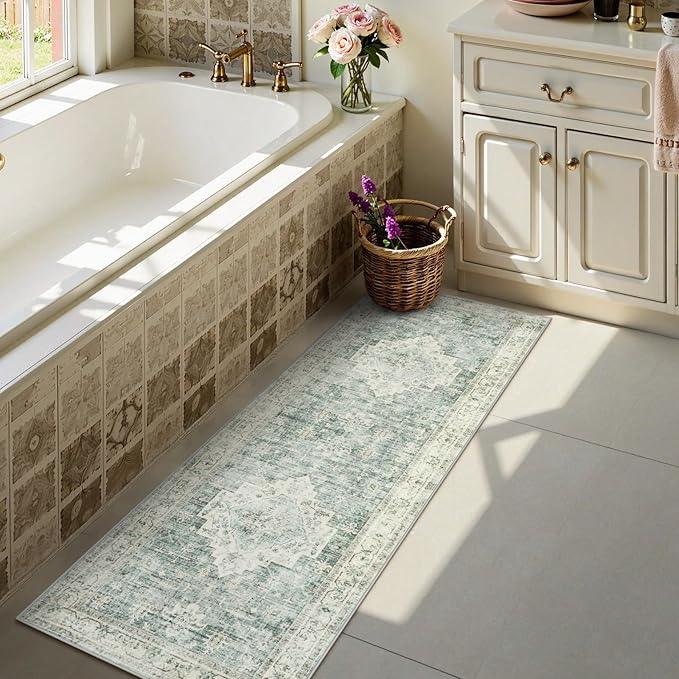 - Vintage Oriental Rug--Let classic and elegance meet in your home!Chic boho and retro kitchen runner rug featuring gorgeous patterns printed on soft & cozy short pile for a velvety touch. Neutral tones of rugs create a warm and lively atmosphere.
