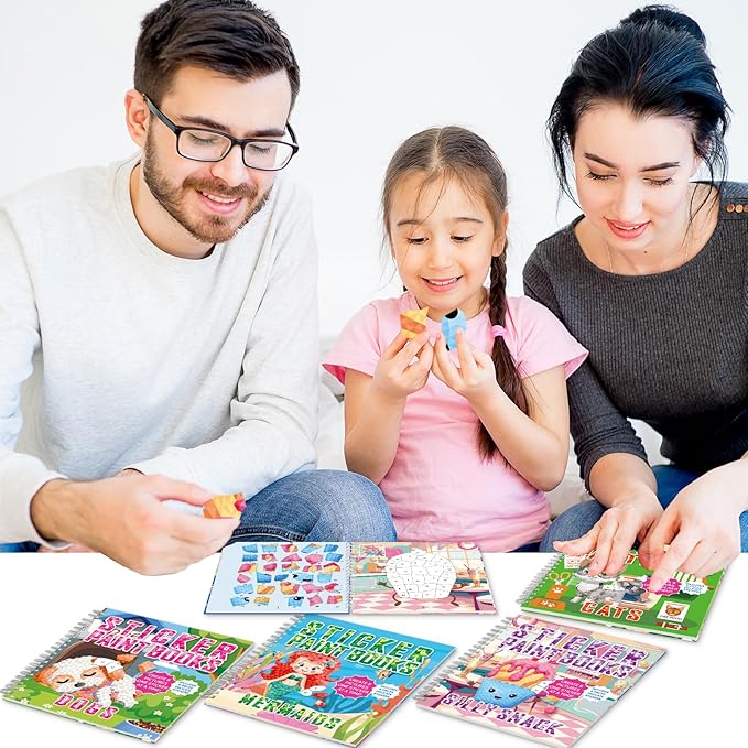- Develop Skills: Take the fun and learning experience to new heights with our paint by sticker books. Boost hand-eye coordination, color and number recognition, and stimulate cognitive development. Ideal for gifting and party favors, these silly snack, dog , cat, mermaid sticker paint books bring joy and foster imagination. Unleash the combined power of play and education with our exceptional sticker paint books.