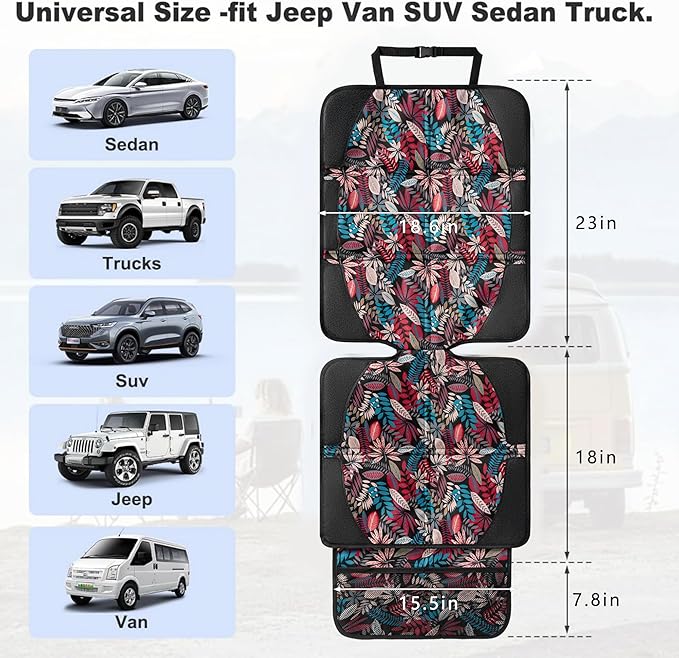 Car Seat Protector for Child Car Seat, 2 Pack Baby Car Seat Covers with Mesh Pockets & Non-Slip Backing 600D Durable Seat Protector Under Baby Car Seat for Car Back Seat (Red Leaves, Large)