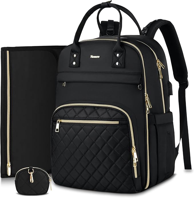 MOMUVO Diaper Backpack for Women Large Capacity with Insulated Pockets Diaper Bags For Baby Girl Boy Waterproof Baby Bags