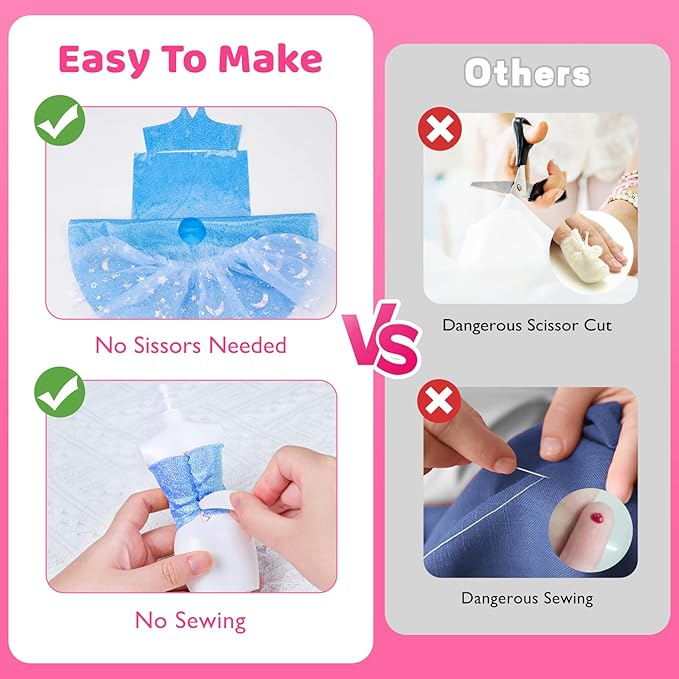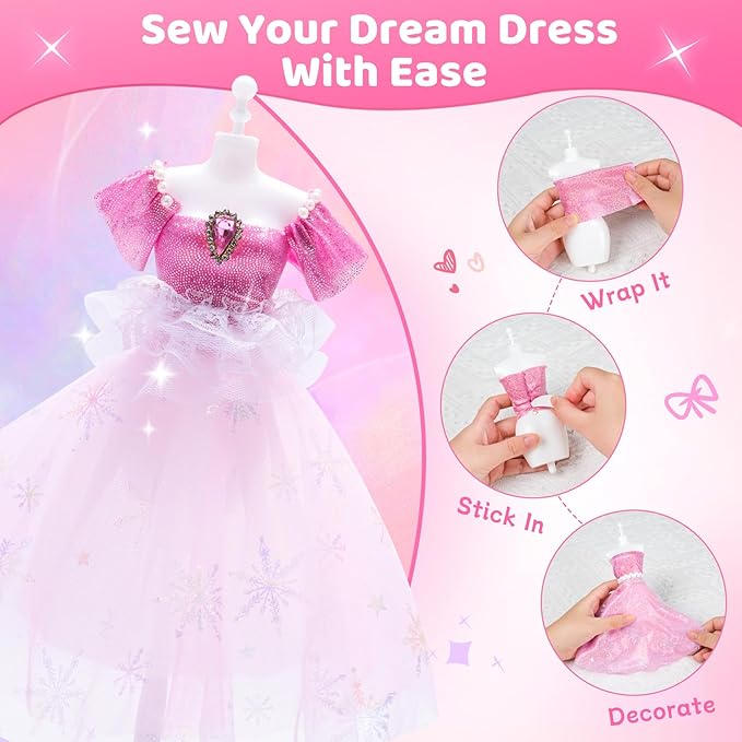 - ✨Simple to Create: With step-by-step instructions, kids can easily make 8 different dress styles. Just wrap, stick, and decorate—simple steps to craft a beautiful dress on their own. It’s a fun way to boost hands-on skills and spark imagination!