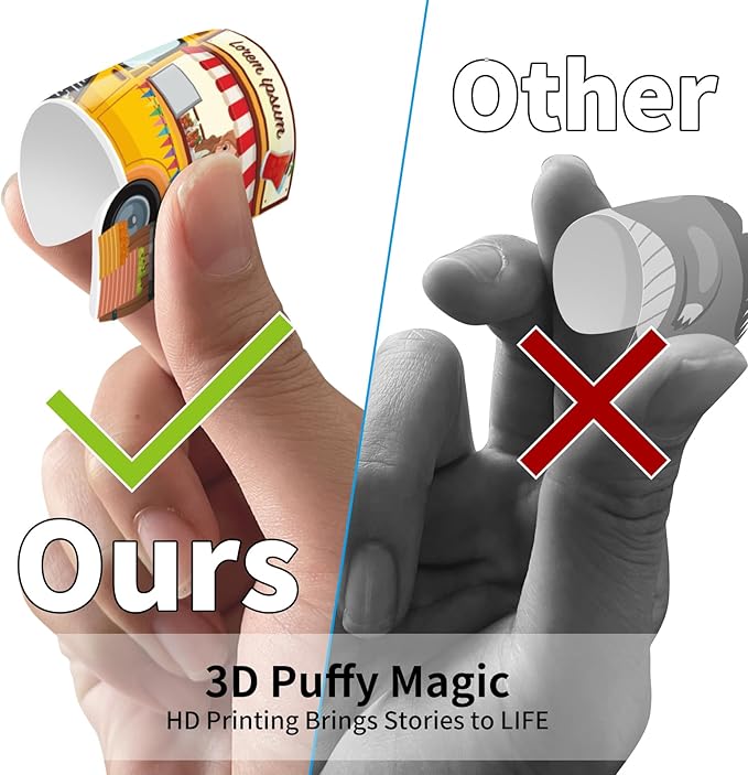 - 250+ Reusable 3D Puffy Stickers with Zero Residue: "Each book includes 40+ 3D HD Printing stickers, Clear and colorful, Tear-resistant material - Peel, Play, Repeat! Can be peeled off and repositioned easily without damaging the sticker or surface, perfect for toddlers small hands to peel and who like to rearrange the scene."