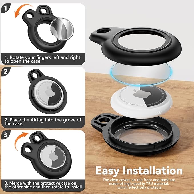- Easy Installation: No complicated operation is required, and you can fix AirTags in the Holder in a few easy steps;[Tips]: The specific installation steps can be seen in the picture; The protective cover of the Apple Airtags keychain will not affect the touch screen and shield the signal; Whether it is finding lost items or remote tracking, it can be easily achieved