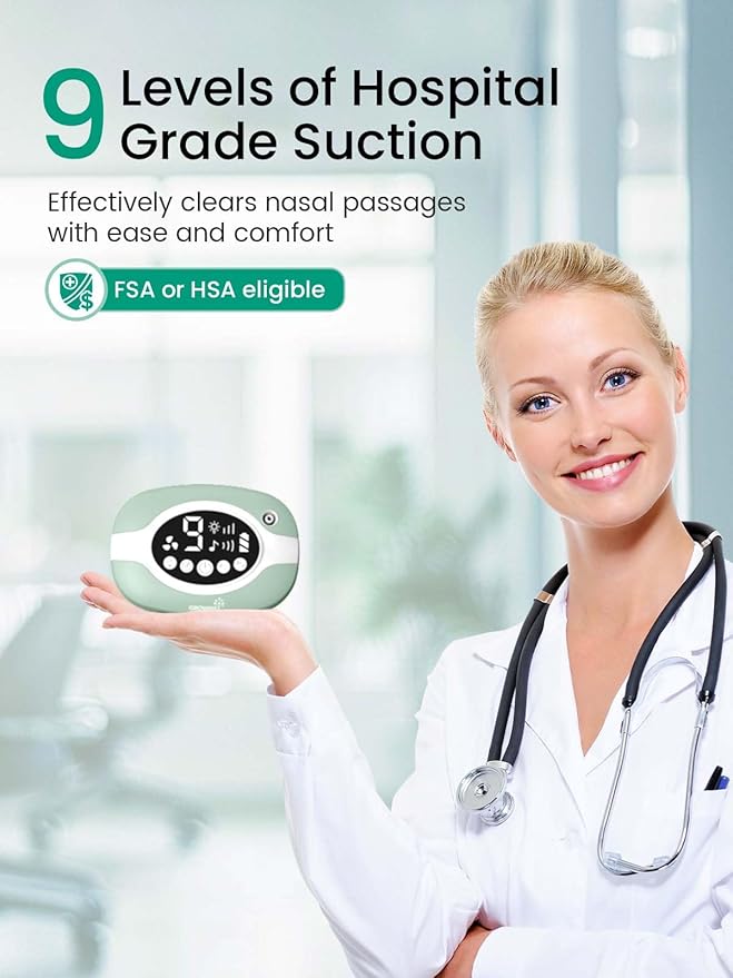 GROWNSY Electric Nose Suction for Baby, Hospital-Grade Nasal Aspirator with Night Light,Soothing Lullabies, Baby Nose Sucker with 9 Adjustable Suction Levels, Green