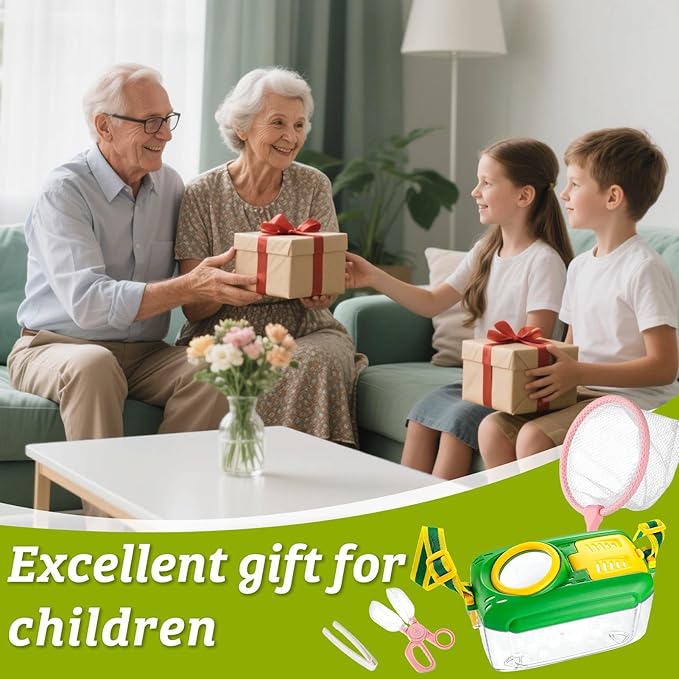 - Surprise Gift for Kids: The bug catcher kit is an ideal birthday gift, children's day gift, outdoor adventure gift, Christmas gift, etc. for your son, daughter, or grandchildren, encouraging them to have the curiosity and action of exploring the world and actively discovering the wonders of nature.