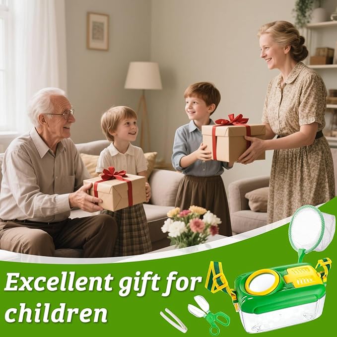 - Surprise Gift for Kids: The bug catcher kit is an ideal birthday gift, children's day gift, outdoor adventure gift, Christmas gift, etc. for your son, daughter, or grandchildren, encouraging them to have the curiosity and action of exploring the world and actively discovering the wonders of nature.