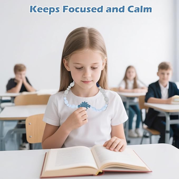 - 【Supports Sensory Needs & Focus】These necklaces are designed to satisfy sensory needs and help improve focus. They provide a safe, calming alternative to the habit of biting nails, hair, clothes, or pens, reducing fidgeting and promoting concentration during activities like schoolwork or playtime