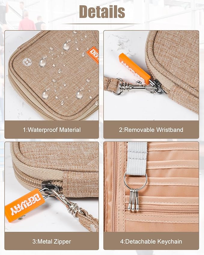 - WATER RESISTANT NYLON: This rfid passport wallet is manufactured from premium nylon material. The water-resistant fabric serves a crucial purpose, it protects your documents from rain, spills, and other forms of moisture. When you close the zipper, it forms a protective seal, ensuring that all your valuable items stored inside the bag are safeguarded. And rest assured that they will remain protected by the reliable water-proof function, no matter where your travels take you.