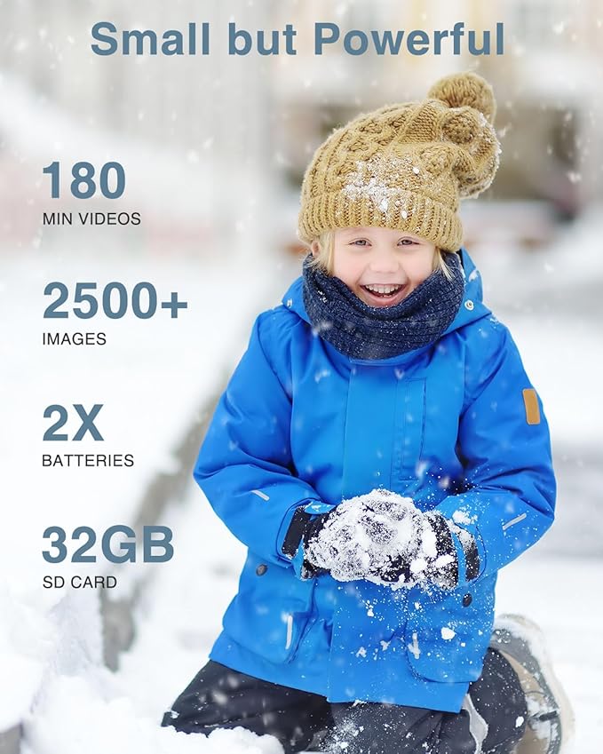 - MINI-SIZE & EASY TO USE - Special mini-size design for kids to easily handheld, this point and shoot camera is small and lightweight, fits in kids' hands perfectly. Comes with a lanyard hang, it's portable for them to carry and move, and compact for travel and camp. The clear simple settings and features of the small portable digital camera make it easy for them to figure out and use themself.