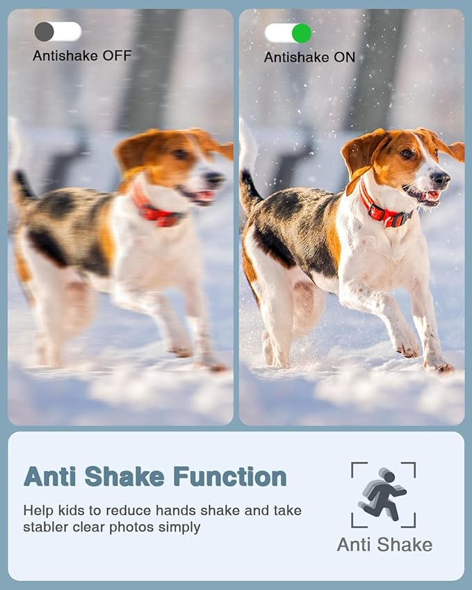- MEANINGFUL GIFT - This black digital camera for kids is equipped with a high-level CMOS Sensor and anti-shake function, which helps to capture vivid clear 44MP Images and record stable smooth FHD 1080P resolution videos. It's a meaningful Christmas or birthday gift camera for kids to cultivate their interest in photography, experience the lovely life, and leave funny memorable moments with family or friends.