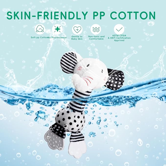 - Multi-Sensory Stimulation: Elephant rattles for babies, high-contrast black & white patterns, gentle wind chime melodies, and BB squeaker sounds engage vision, hearing, and touch to boost emotional bonding and brain development