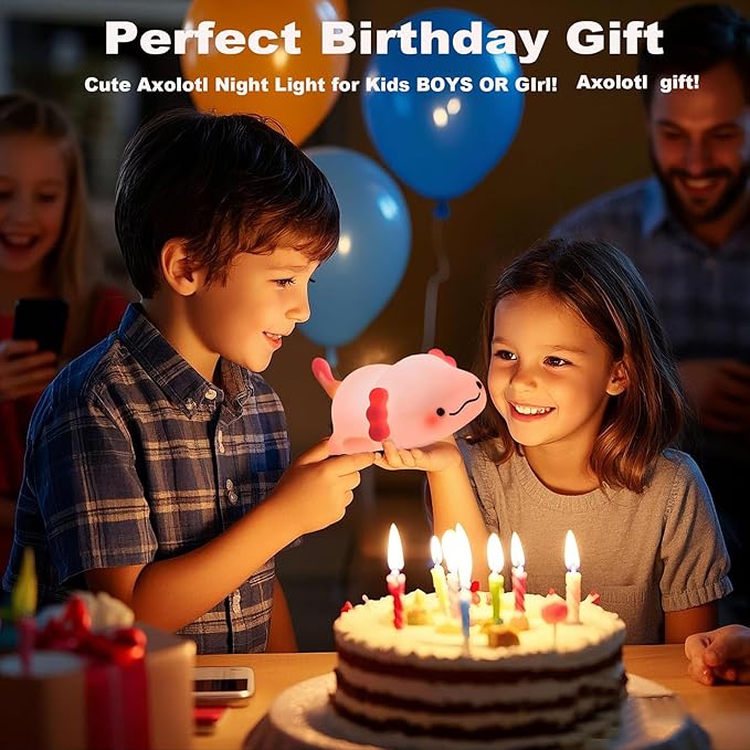 - Axolotl gifts-Novelty Nursery Lamp and Squishy Axolotl Lamp:This cute LED axolotl night light is perfect gift! Whether for holidays, birthdays or Christmas, this delightful axolotl light makes a thoughtful present for kids, friends, mothers, fathers and loved ones. Also Very Suitable For New Mommy As Nursery Light,For Breastfeeding, Reading, And Preventing Falls During The Night