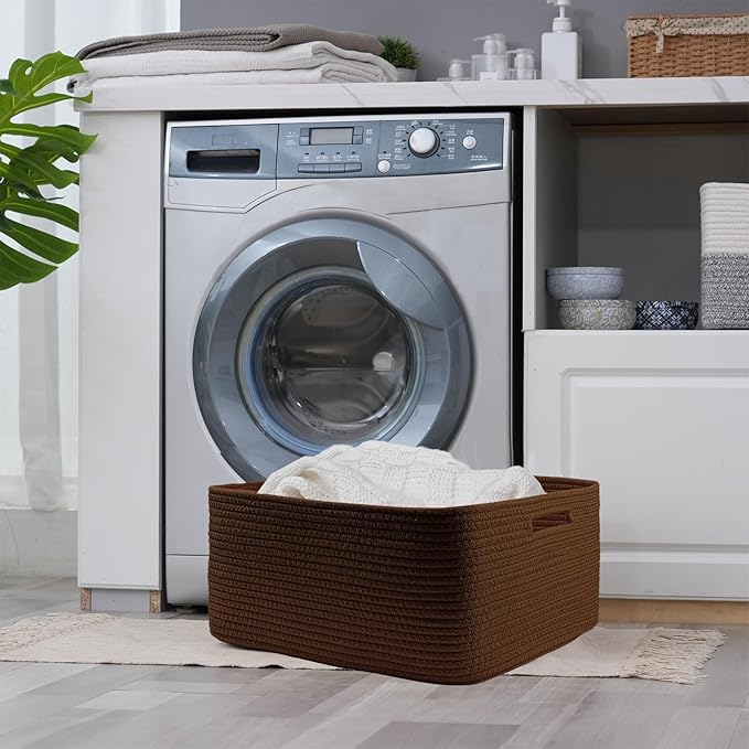 COMFY-HOMI Cotton Rope Woven Basket with Handles for Shelves,Toys,Book, Cloth Storage Baskets for Organizing-17" x 13" x 7.5" Toy Decorative Organizer for Living Room, Bathroom (dark brown)