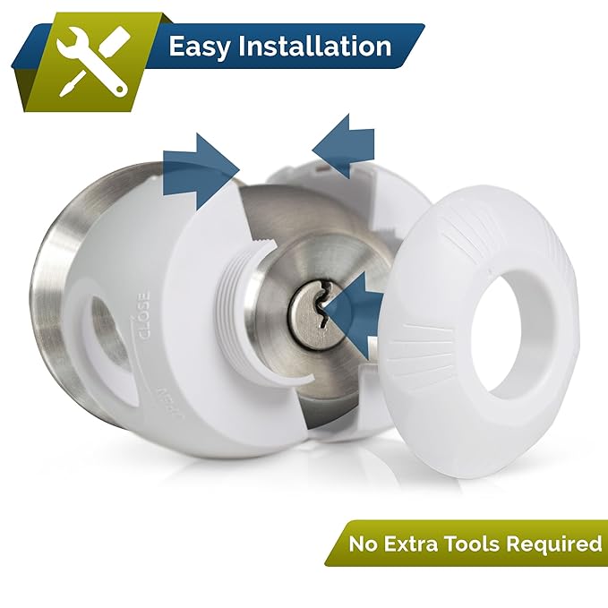 - Robust Construction, Easy to Install… Made of durable BPA-free plastic, these kid proof door knob covers are tougher than most. The indestructible design allows you to reuse them multiple times. Installs in under 2 minutes—no tools required.