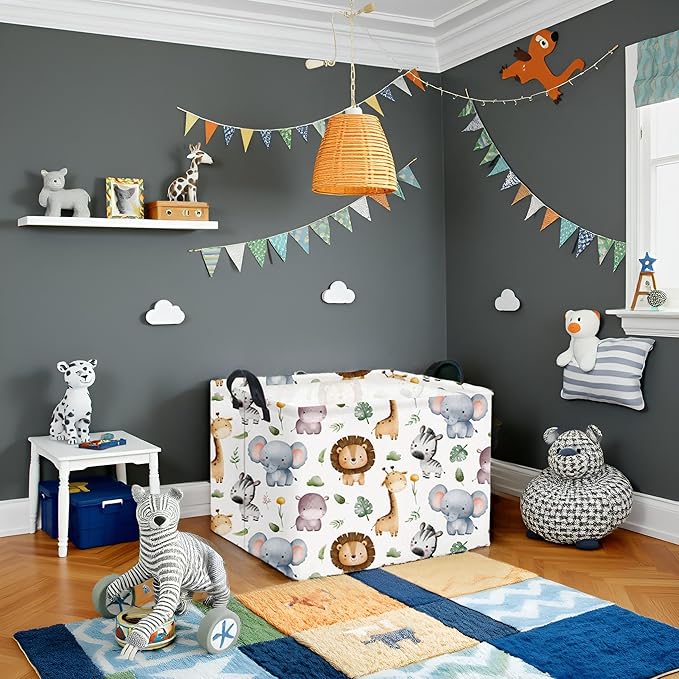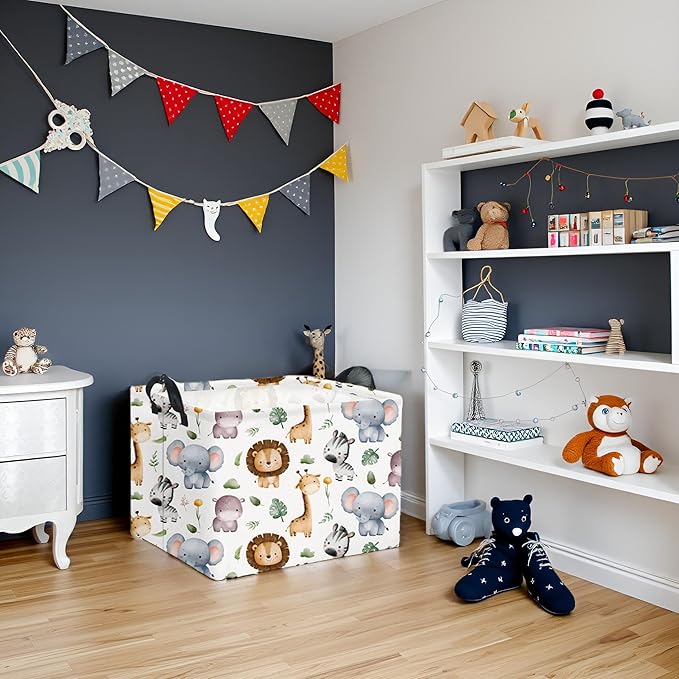 HIYAGON Rectangular Woodland Animal Basket Baby Storage Basket Storage Bin Organizer Box Animal Room Decor(Animal Basket)