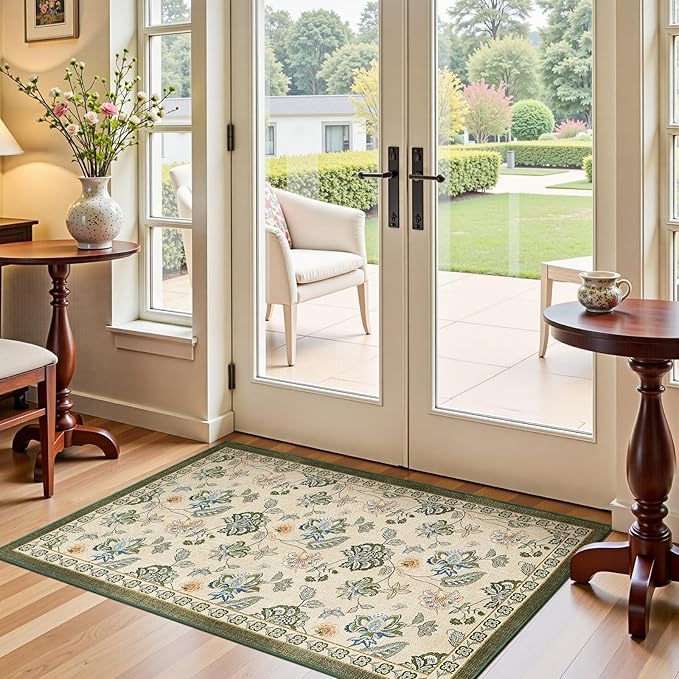 - Freshen Entryway & Kitchen: Perfectly sized to welcome guests at doorway or brighten cozy kitchen corner, this compact rug brings vintage floral charm without adding bulk. Its slim, easy-care design fits snugly in busy spots, making everyday life a little more stylish and effortless.