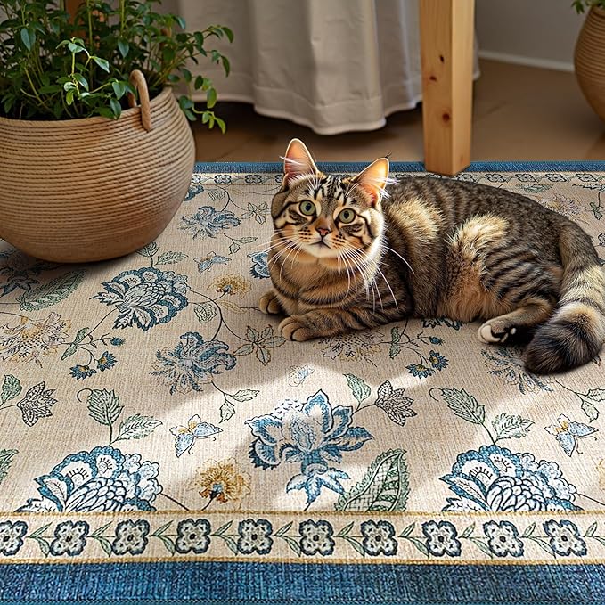 - Freshen Entryway & Kitchen: Perfectly sized to welcome guests at doorway or brighten cozy kitchen corner, this compact rug brings vintage floral charm without adding bulk. Its slim, easy-care design fits snugly in busy spots, making everyday life a little more stylish and effortless.