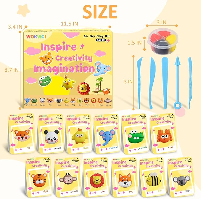 - Independent packaging, independent step-by-step tutorial card: The air dry clay set contains 12 boxes of animal clay and 5 carving tools. Each animal has an independent packaging and comes with an independent step-by-step tutorial. Each box of animal clay jars has 4 compartments filled with 4 different colored clay pieces, enough for you to create 12 animal models and create cute sculpture artworks to your heart's content