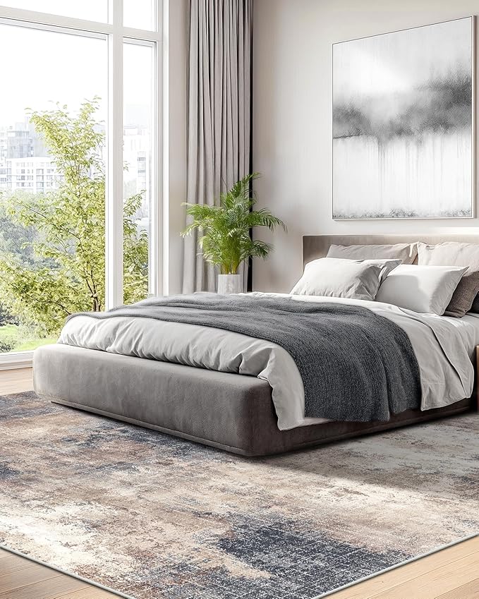 - 【Modern Abstract Design】This 8x10 area rug features an irregular, abstract pattern that blends complementary shades in a striking way to create texture & feeling. Its unique design brings personality & flair to your space, enhancing the overall aesthetic of your home.
