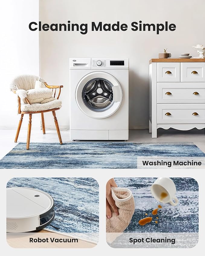 - 【Durable and Easy to Clean】This living room rug features a 0.24″ low-pile design with double-stitched edges for durability and easy maintenance. It’s easy to clean with a standard vacuum or robotic vacuum. For a deeper clean, this rug is machine washable. Ideal for high-traffic areas.