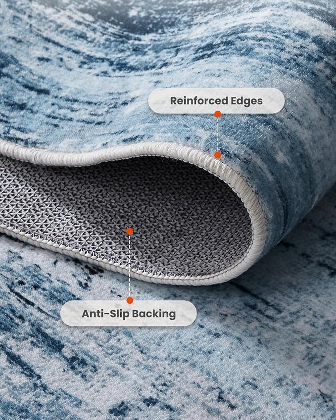 Amada 6x9 Washable Area Rug, Modern Abstract Living Room Rug with Non-Slip Backing & Short Pile, Large Rug with Abstract Pattern for Living Room, Bedroom and Dinning Room, Blue