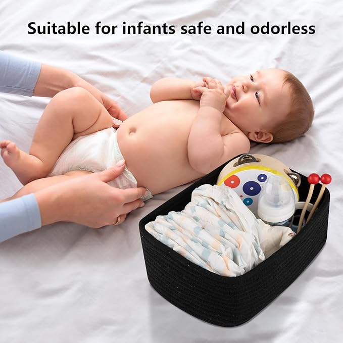 - [Premium Cotton Material]:Our cute baby storage baskets are made of high quality cotton hand-woven by workers, soft and odorless, no sharp edges and corners, very friendly to babies and pets, a good choice for baby-sitting baskets and dog or cat toy baskets