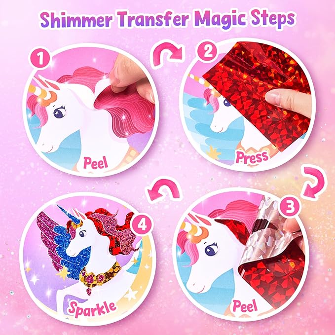 - Sparkling Craft Art, Easy to Create Stunning Princess and Magical Pony Effects: Craft is simple yet incredibly fun! Simply peel away parts of the design to reveal the sticky surface, apply the sparking pieces, then gently peel it off to reveal a dazzling princess artwork. Not only will kids experience the joy of success, but they will also improve their focus and fine motor skill from this craft activity. The vibrant princess-themed artwork will leave kids proudly showcasing their creations