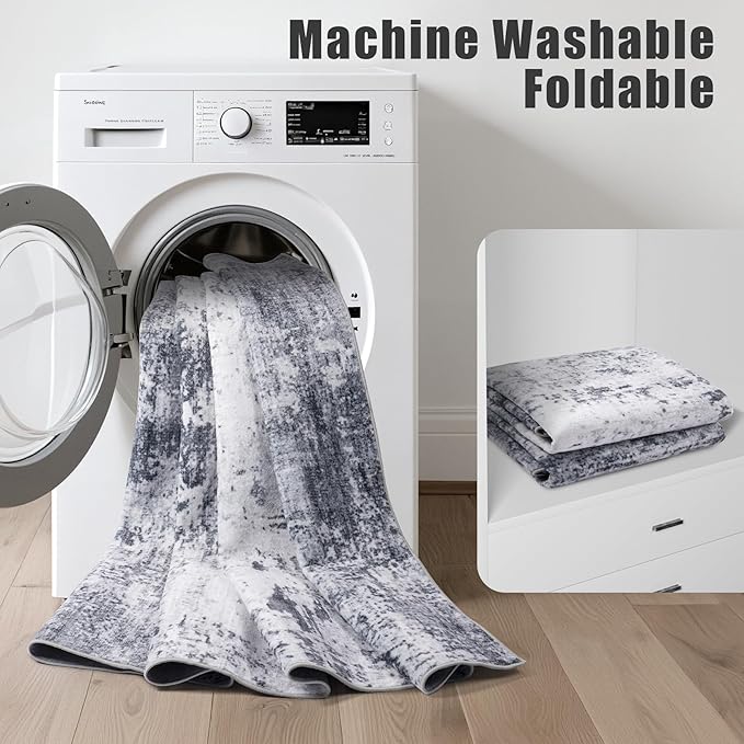 - Machine Washable Rug: Say goodbye to hidden dirt and cleaning hassles. The low soft pile of this 9x12 rug keeps most dirt on the surface, making it easy to clean with a carpet brush.The added bonus of it being machine washable makes it a breeze to maintain and saves you time. 6'x9 'and above are recommended to use nearby commercial laundry rooms