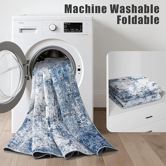 9x12 Area Rug Living Room Rug: Washable Modern Abstract Soft Thin Rug Indoor Floor No Slip Stain Resistant Carpet for Bedroom Dining Room Farmhouse Nursery Home Office - Blue