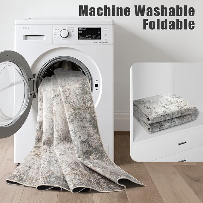 - Machine Washable Rug: Say goodbye to hidden dirt and cleaning hassles. The low soft pile of this 5x7 rug keeps most dirt on the surface, making it easy to clean with a carpet brush.The added bonus of it being machine washable makes it a breeze to maintain and saves you time. 6'x9 'and above are recommended to use nearby commercial laundry rooms