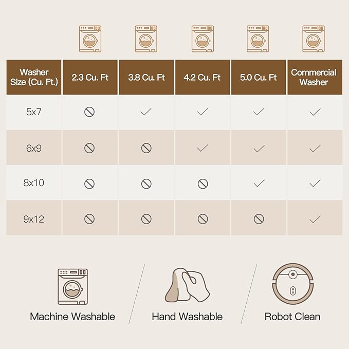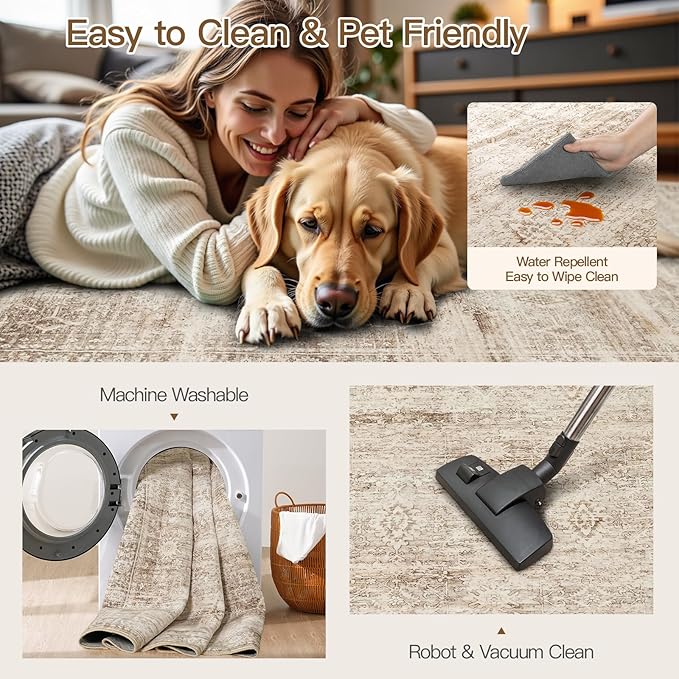 - Machine Washable Rug: This low-pile area rug resists pet hair and debris and is easy to clean—simply vacuum, sweep, or wipe between machine washes, saving you time and effort. Care Tips: Cold gentle cycle. Mild detergent only. Tumble dry low or air dry