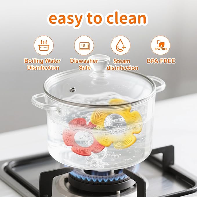 - 【Safe and infant teething toys】The teething ring are made from soft, elastic, odorless rubber that is gentle on babies’ gums. They can be easily removed and soaked in hot water for thorough high-temperature sterilization and cleaning, ensuring a safe biting experience.