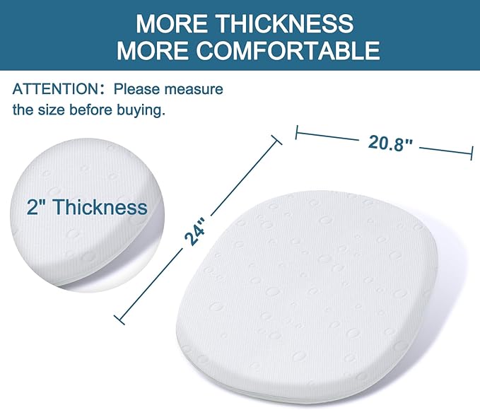 Baby Bassinet Mattress, 24" x 20.8" x 2" Dual Sided Gel Memory Foam Mattress with Breathable Removable Soft Cover Fit for Graco Pack n Play Dome LX Bassinet