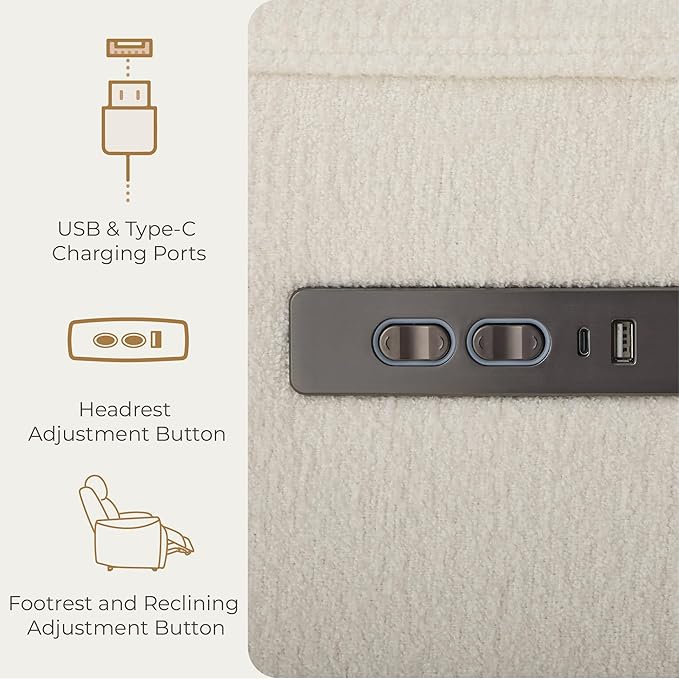 - Premium Dual-Motor Control - Seamlessly adjust your comfort with the dual-motor control system. The footrest and backrest move together with a single button, while the headrest adjusts independently. The backrest only reclines after the footrest is extended, allowing the seat surface to adjust from 90° to 135° in a stepless manner. This versatile design accommodates nursing, TV viewing, napping, and reading with ease. The electric headrest provides customized support for ultimate relaxation.