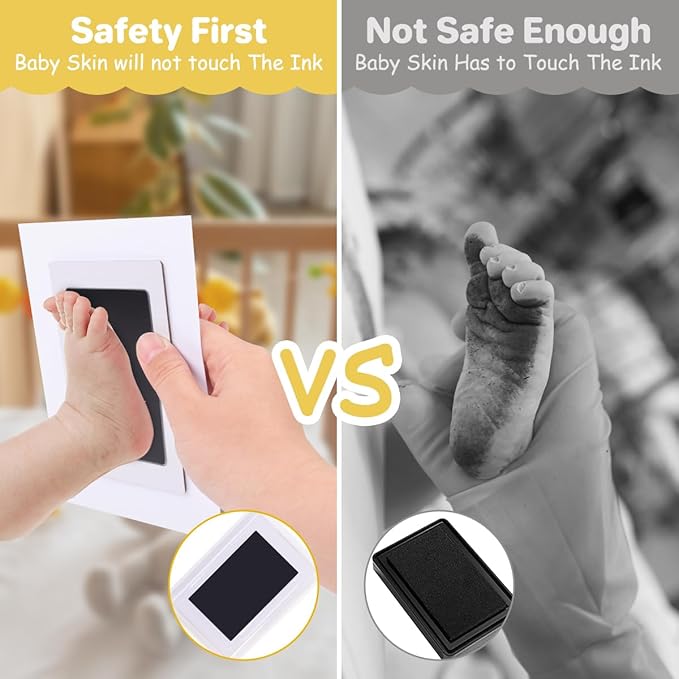 - Clean-Touch Inkless Pad:This newborn footprint kit features a mess-free ink pad that is safe for your baby's delicate skin, ensuring a clean and easy way to capture tiny hand and footprints. With the proper size of 3.7*2.3 inches, our inkless pad is perfect for newborn baby’s hand and footprints