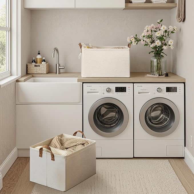 - Handle with Ease: With the 2 PU handles securely riveted to the sides of the storage bin, you can easily carry items without tearing the handles.