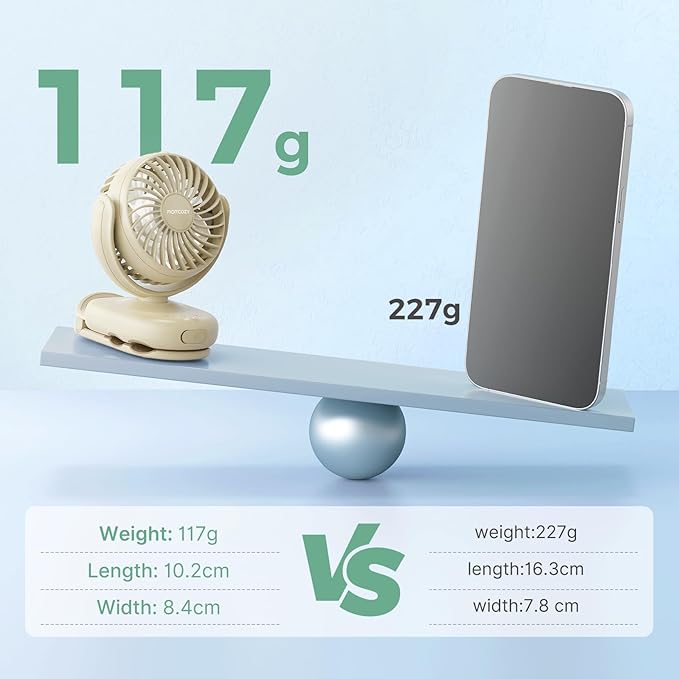 - Ultra-Light & Portable:This portable mini stroller fan weighs ONLY 0.26 lbs (lighter than an apple) to clip effortlessly onto diaper backpack, strollers, baby carriers, organizer, hight chair, nursing cover, crib. The fan gap is designed to be ≤4.5mm, allowing you to travel safely anytime, anywhere.