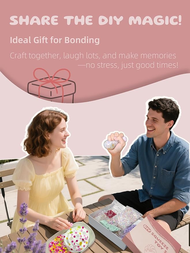DIY Stress Ball Making Kit - 10 TPR Skins, 13 Fillers, 14 oz Slime, 7 oz Clay, Create ASMR Anxiety Relief Toys, Handmade Squishy Stress Balls, Unique Self-Care Gifts for Women, Crunchy and Relaxing
