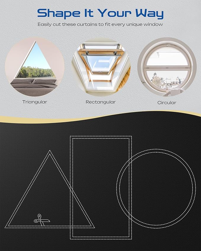 - Multiple Sizes Available - Offering a range of width and height specifications to precisely fit various window types, from small bathroom windows to standard bedroom windows and large living room floor-to-ceiling windows. It is recommended to choose a width 2–5 inches wider than the window and a length with a 1–2 inch drape. Combined with the hook-and-loop tapes to seal the edges, it achieves 100% light-proof shading