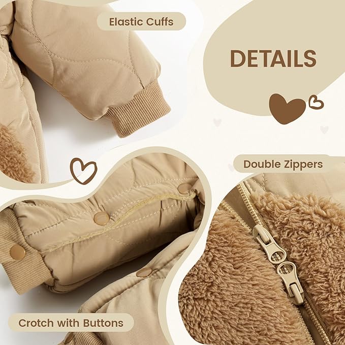 • [🐻Perfect for Winter Outdoor]: Don't cancel outdoor fun! This baby snowsuit enables stroller walks, park play, and snowy explorations. This newborn snowsuit doubles as holiday attire for Christmas or birthday parties. Trusted winter clothes for baby girls and boys.