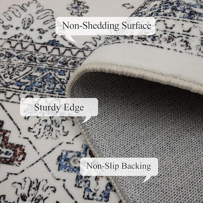 Washable 6x9 Area Rug for Living Room, Carpet for Bedroom Dining Room, Non Slip&Non-Shedding Resistant Low Pile Vintage Print Rug for Home Office (White Cream/Gray)