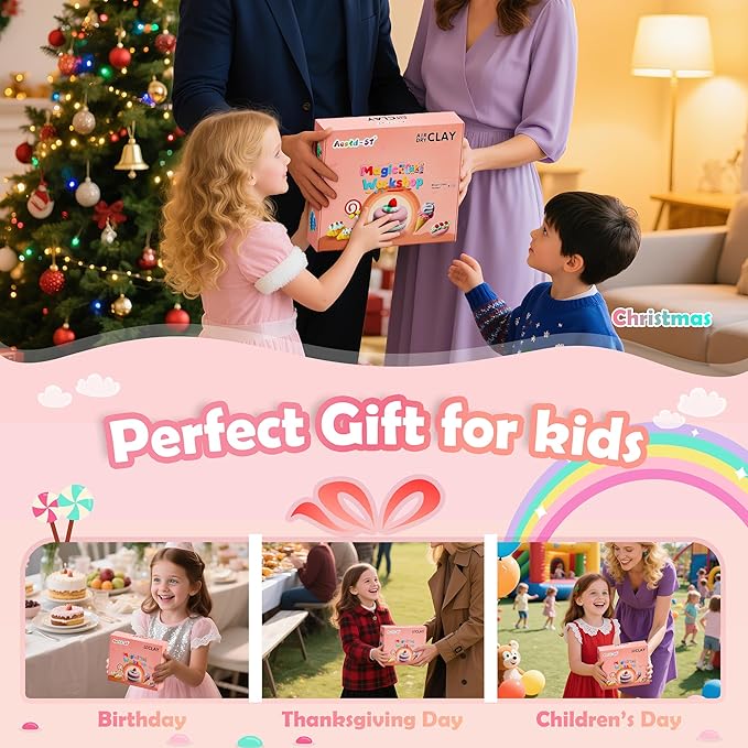 - Creative Fun Gift for Kids:This vibrant beautifully packaged molding clay kit features sweet cake dessert designs, making artistic play extra special.Makes a fun gift for girls, boys and teens.A gift that combines artistic creativity, education, and parent-child interaction—perfect for birthdays, Christmas, parties, or other celebrations!