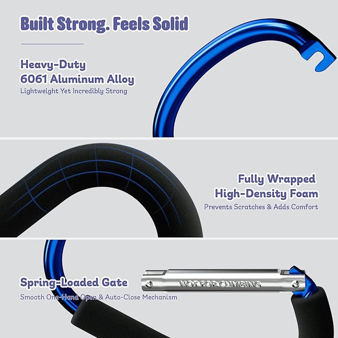 - Durable, Lightweight Aluminum Build with Multiple Color Options: Constructed from heavy-duty aluminum with a comfortable foam grip, the clip combines strength and style, securing stroller bags firmly without adding extra weight