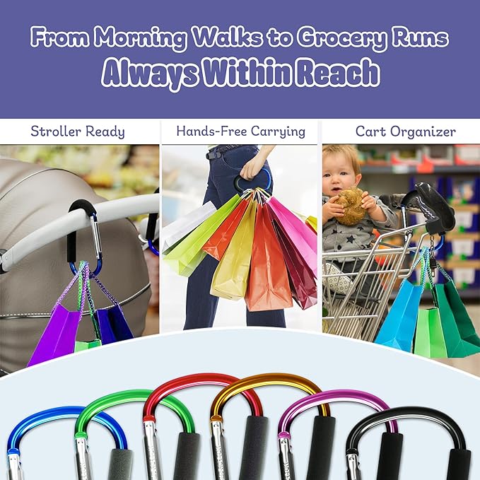 - Multipurpose Hanging Clip: Beyond stroller bag holders, the strong clip is ideal for carrying multiple grocery bags, attaching items to luggage, or organizing spaces like garages—offering versatile use for outings and errands