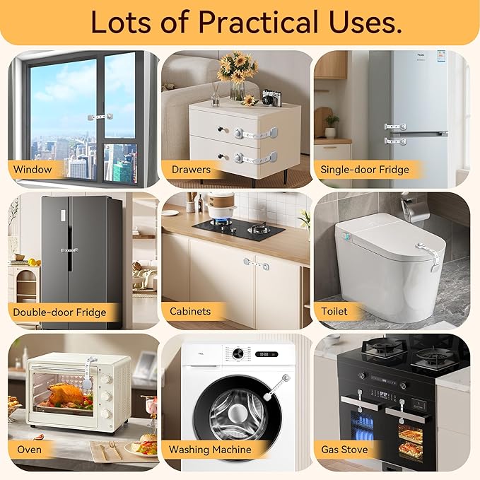 - Complete Baby-Proofing Solution: We specialize in high-quality baby-proofing-Trusted Child Safety Brand—cabinet locks, fridge locks, Toilets Locks, and more. ensure your toddler grows up safe and happy .From kitchens to bathrooms , ✔️ Drawers (knives, utensils) ✔️ Fridges (food, chemicals) ✔️ Toilets (drowning risk) ✔️ Ovens & dishwashers (burns)